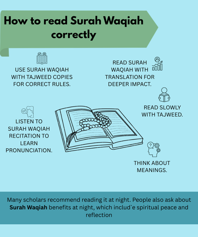 • Use Surah Waqiah with tajweed copies for correct rules.